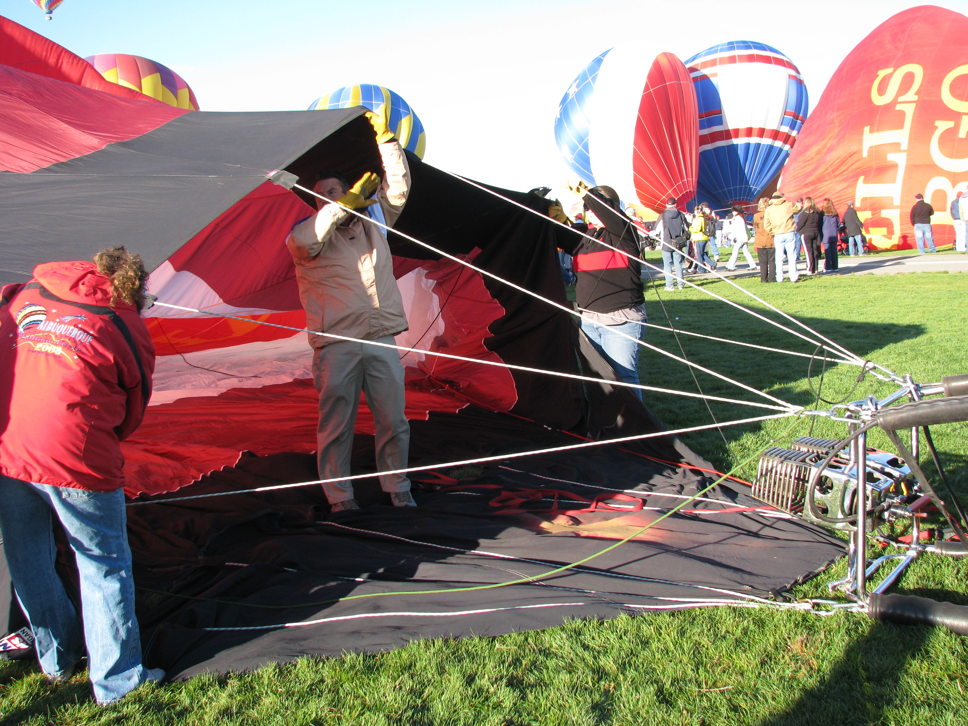 בעלי הכדור מציבים את בלוני הגז והמאווררים ממול לפתח הכדור, ומתחילים למלא אותו באוויר חם. אנחנו ממש ליד ולא מפסיקים לצלם.
