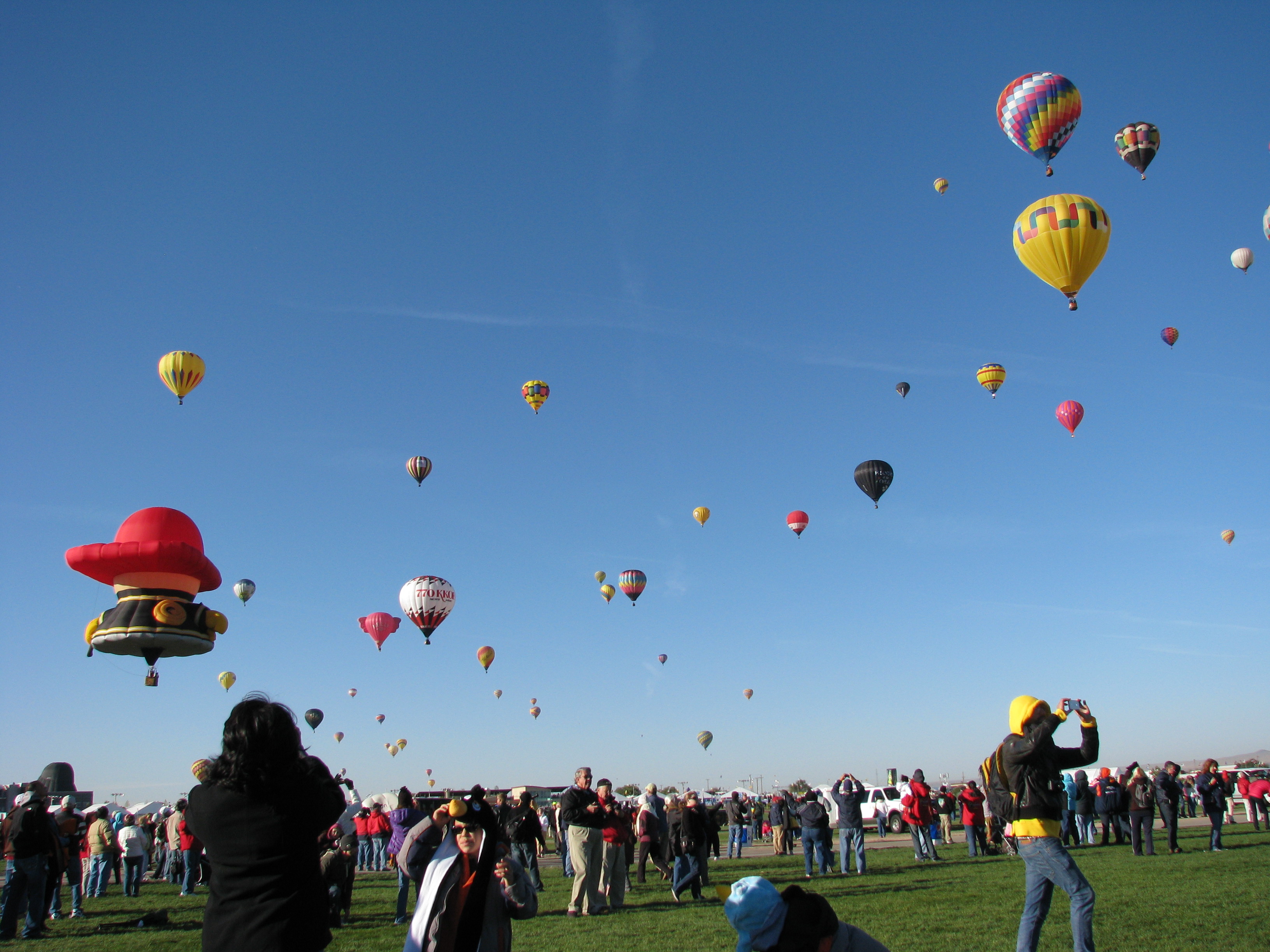 חוזרים לדשא. לאט לאט חשים את ההתרגשות באוויר. האות ניתן והכדור הראשון הפותח את המטס מתחיל להתנפח. בלי לדעת מראש, יצא שנעמדנו ממש לידו. הכדור הוא של חברת הדלק פיליפס 66, נותנת החסות הרשמית של הפסטיבל.